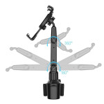 Universelle Tablet-Halterung für Getränkehalter im Auto mit verstellbarem langem Hals und 360°-Drehung. Robuste und stabile Basis, einfache Installation ohne Klebstoff. Kompatibel mit Geräten von 12,5 bis 20 cm. Perfekt für die GPS-Navigation.