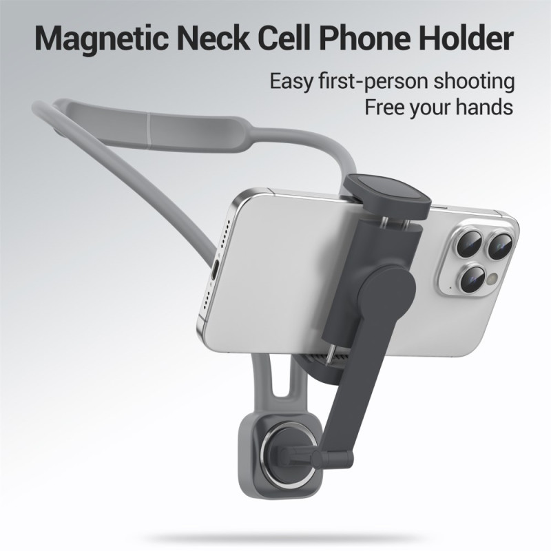 Als modulares Kreativwerkzeug par excellence eignet sich diese Magnethalterung sowohl für den Einsatz in Bewegung als auch für statische Aufnahmen. Sein POV-Halsband-Design ermöglicht immersive Aufnahmen mit freien Händen. Für zusätzliche Stabilität ist ein Mini-Stativ im Lieferumfang enthalten, wodurch sie sich ideal für Gruppenselfies und Standbilder eignet. Das flexible, silikonbeschichtete Halsband sorgt für einen bequemen Sitz, ohne Schmerzen zu verursachen. Das magnetische Befestigungssystem ermöglicht ein schnelles Anbringen und Abnehmen des Telefons. Sie ist mit allen Smartphones (6-11 cm Breite) kompatibel.