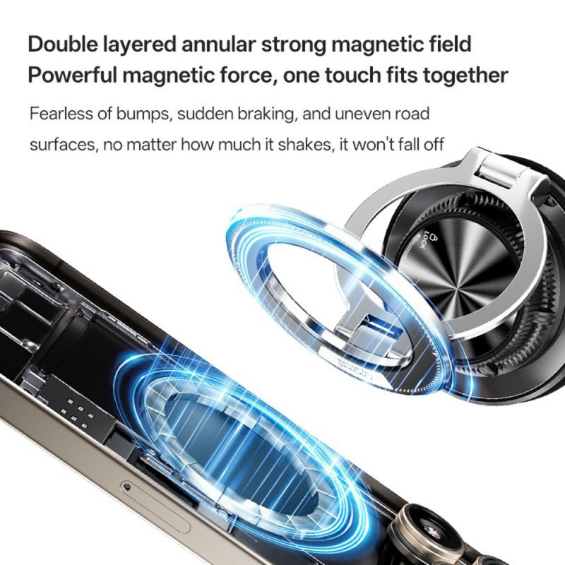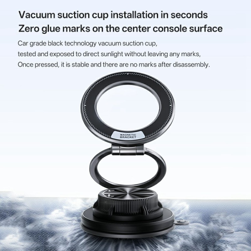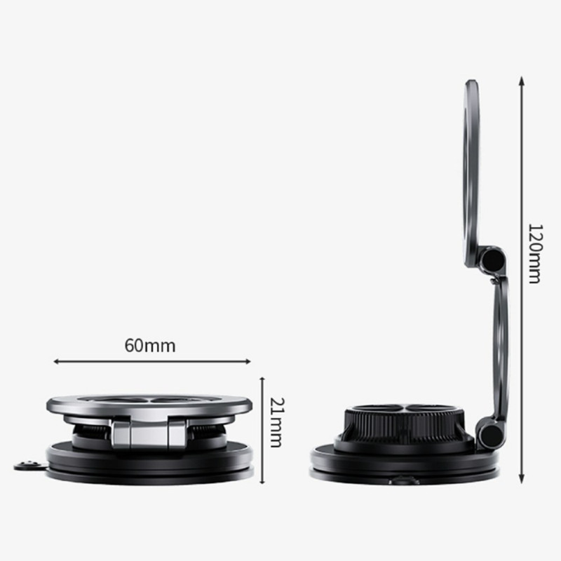 Dank des Scharniers aus Wolframstahl ist die Winkeleinstellung präzise, haltbar und kann an alle Oberflächen des Fahrzeugs angepasst werden. Diese ESSAGER-Halterung ist aus einer Premium-Zinklegierung gefertigt, die eine höhere strukturelle Härtegrad bietet. Sie verwendet eine doppelte Befestigungsmethode: einen starken Saugnapf und N52-Neodym-Magneten für einen ultra-sicheren Halt auf dem Armaturenbrett. Maximale Flexibilität wird durch die 360°-Drehung, 210°-Faltung und 180°-Kippung erreicht. Das ultradünne, faltbare Design ermöglicht eine einfache Aufbewahrung, wenn es nicht gebraucht wird.
