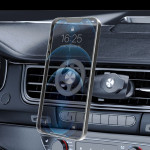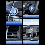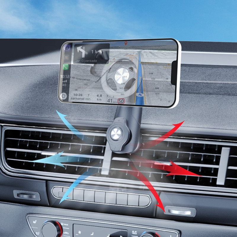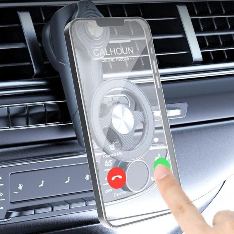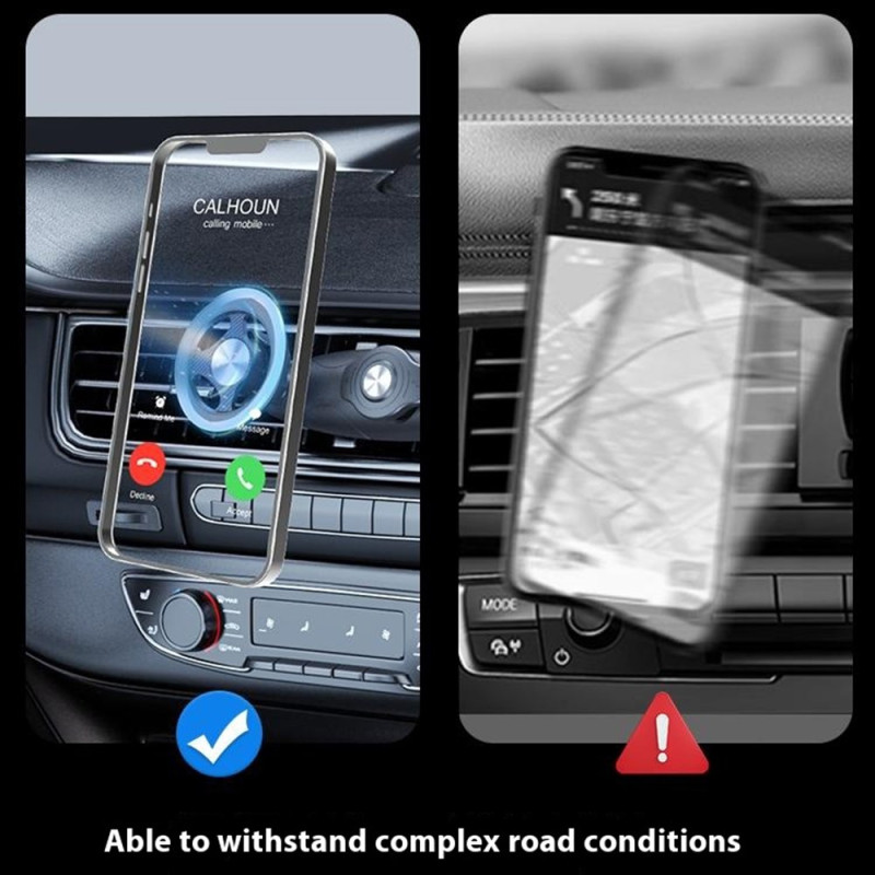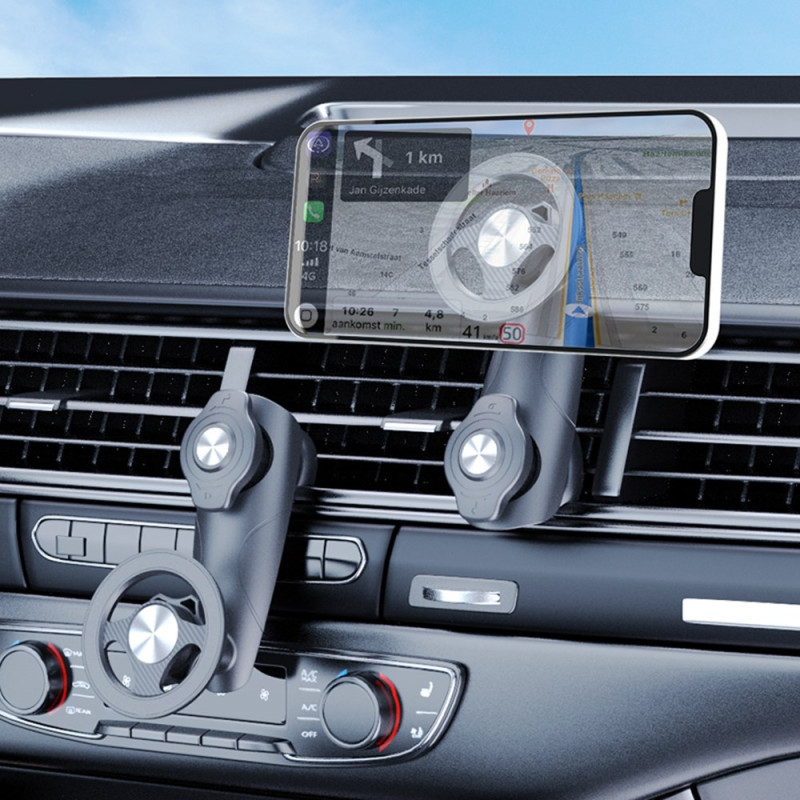 Der sofortige Zugriff auf Ihr Gerät wird durch die Magnetkraft gewährleistet, während der Haken für eine stabile Befestigung am Gitter sorgt. Diese Halterung verwendet starke Magnete für einen sicheren Halt und ermöglicht eine einfache Einhandbedienung. Sein verlängerter Arm bietet Flexibilität für eine genaue Einstellung des Blickwinkels. Die hintere Halterung mit einem robusten Haken greift fest in die Lüftungslamellen und sorgt für zusätzliche Stabilität auch auf holprigen Straßen. Die Silikonbeschichtung schützt das Handy und verhindert, dass es verrutscht.