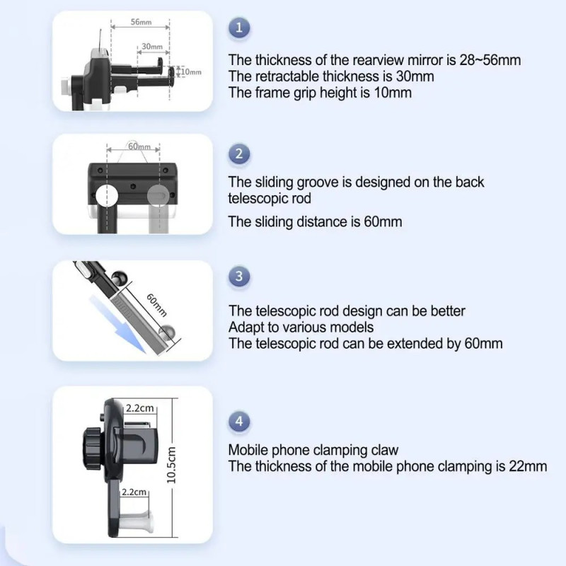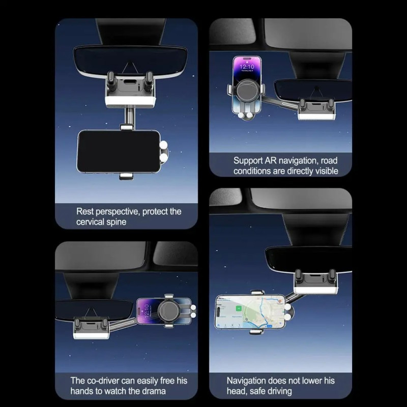 Die H256 Rückspiegel-Telefonhalterung bietet eine praktische und sichere Lösung, um Ihr Smartphone während der Fahrt in Reichweite zu haben. Mit seinem verstellbaren Teleskoparm und dem 360°-Kugelgelenk lässt sich der perfekte Winkel zum Surfen einstellen, ohne die Sicht zu behindern. Mit einer blendfreien Klemme und einer Silikonbeschichtung entworfen, schützt es den Spiegel und sorgt gleichzeitig für eine feste und stabile Befestigung. Leicht und dank des Stahlkabels einfach zu montieren, passt es an die meisten Spiegel und hält Ihr Handy fest an Ort und Stelle, um eine reibungslose und sichere Fahrt zu ermöglichen.