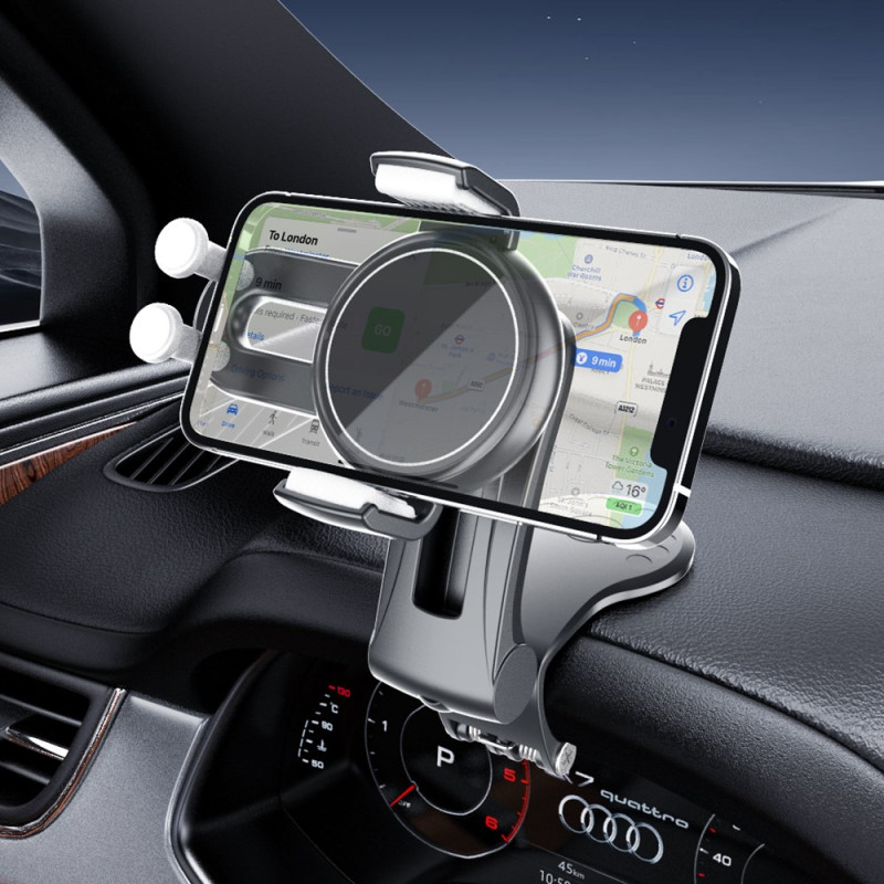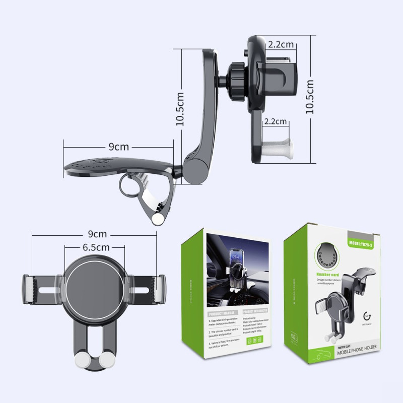 Die Telefonhalterung YB25-3 für das Armaturenbrett vereint Eleganz und Funktionalität für ein sichereres und komfortableres Fahrerlebnis. Das sorgfältige Design fügt sich nahtlos in den Innenraum des Autos ein und bietet dank der robusten Klemme eine hervorragende Stabilität. Er ist verstellbar und mit den meisten Smartphones kompatibel und ermöglicht eine schnelle Installation mit nur einer Hand und ohne Werkzeug. Aus strapazierfähigem ABS und Silikon gefertigt, hält sie Ihr Gerät auch auf holprigen Straßen sicher fest und kann auch als Halterung für Parkplatten verwendet werden.