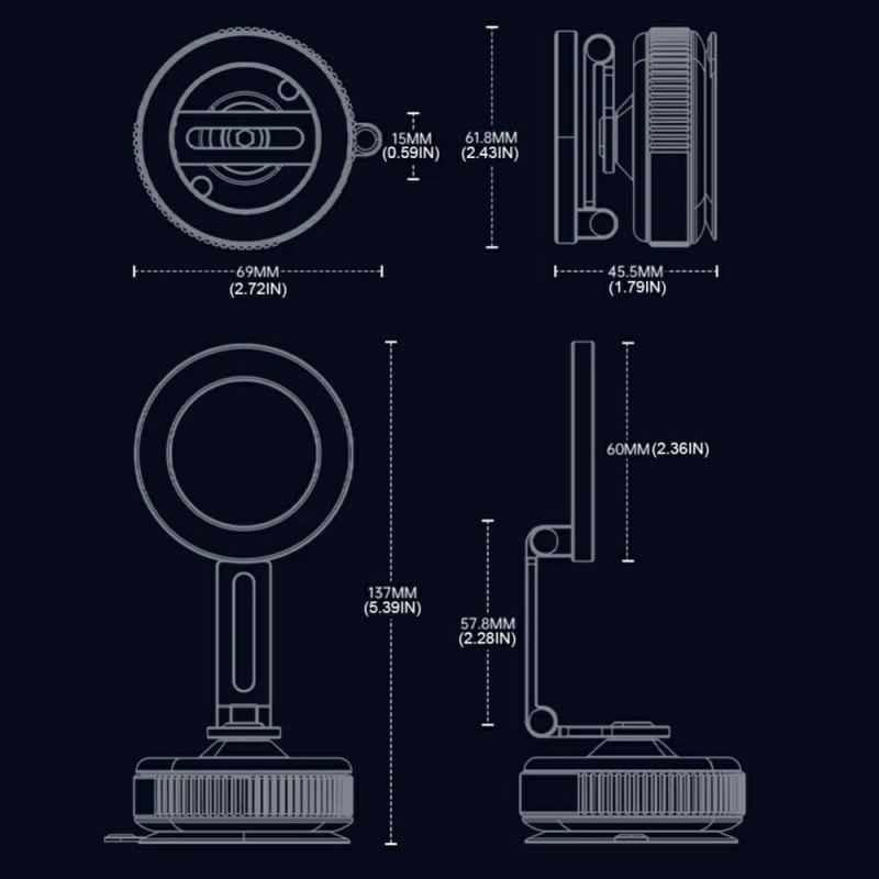 Die magnetische Telefonhalterung für das Auto bietet eine ultra-sichere Befestigung und maximale Flexibilität für eine sicherere Fahrt. Ausgestattet mit 16 starken Magneten und einem doppelten Vakuum-Saugsystem sorgt sie für perfekten Halt auf dem Armaturenbrett oder der Windschutzscheibe, selbst auf unebenen Straßen. Dank seiner 360°-Drehung lässt sich der Blickwinkel ganz einfach auf Hoch- oder Querformat einstellen. Hergestellt aus einer leichten, langlebigen Aluminiumlegierung mit rutschfesten Silikonpads, hält er jedes Smartphone ab 4,7 Zoll sicher und ohne Kratzer.