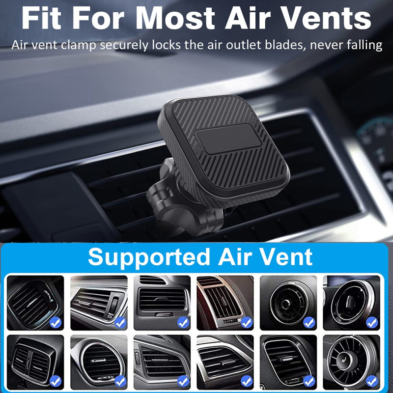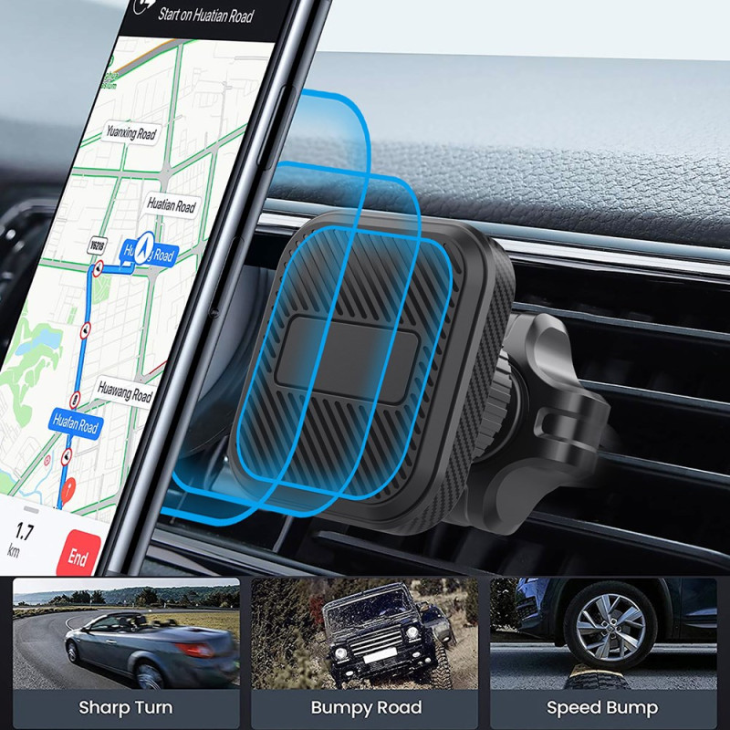 Die magnetische 360°-Drehhalterung für Lüftungsgitter im Auto kombiniert Praktikabilität, Sicherheit und kompaktes Design. Mit ihren 4 integrierten Magneten hält sie Ihr Smartphone sicher fest, auch auf unebenen Straßen. Sein 360°-Drehsystem ermöglicht eine reibungslose Anpassung für einen optimalen Betrachtungswinkel im Hoch- oder Querformat. Er lässt sich einfach am Lüftungsgitter anbringen und kann mit einer Hand bedient werden, um eine schnelle und ablenkungsfreie Handhabung zu gewährleisten. Es ist mit allen Smartphones von 4 bis 7 Zoll kompatibel und bietet eine elegante und stabile Lösung für die Navigation oder freihändiges Telefonieren.