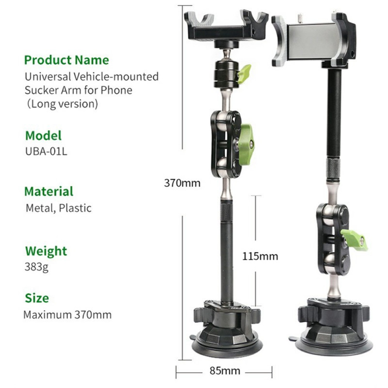 Die LANPARTE UBA-01L Saugnapf-Autohalterung bietet eine stabile und vielseitige Befestigung für Ihre Smartphones und Kameras, ideal zum Autofahren, Vloggen oder für Aufnahmen in Fahrzeugen. Mit seinem 37 cm langen, ausziehbaren Arm können Sie die Position und den Winkel Ihres Geräts frei einstellen, um den perfekten Bildausschnitt zu finden. Die aus Aluminium, ABS und Silikon gefertigte Halterung ist robust, flexibel und langlebig. Sein starker Saugnapf sorgt für zuverlässigen Halt auf dem Armaturenbrett oder der Windschutzscheibe. Sie ist mit den meisten Fahrzeugen und Geräten kompatibel und der ideale Begleiter, um Ihre Fahrten sicher festzuhalten.