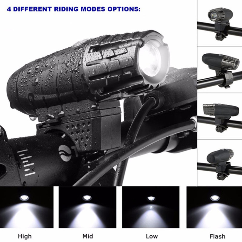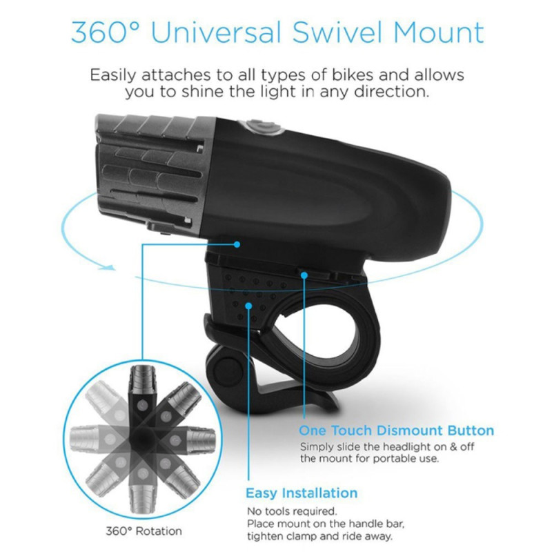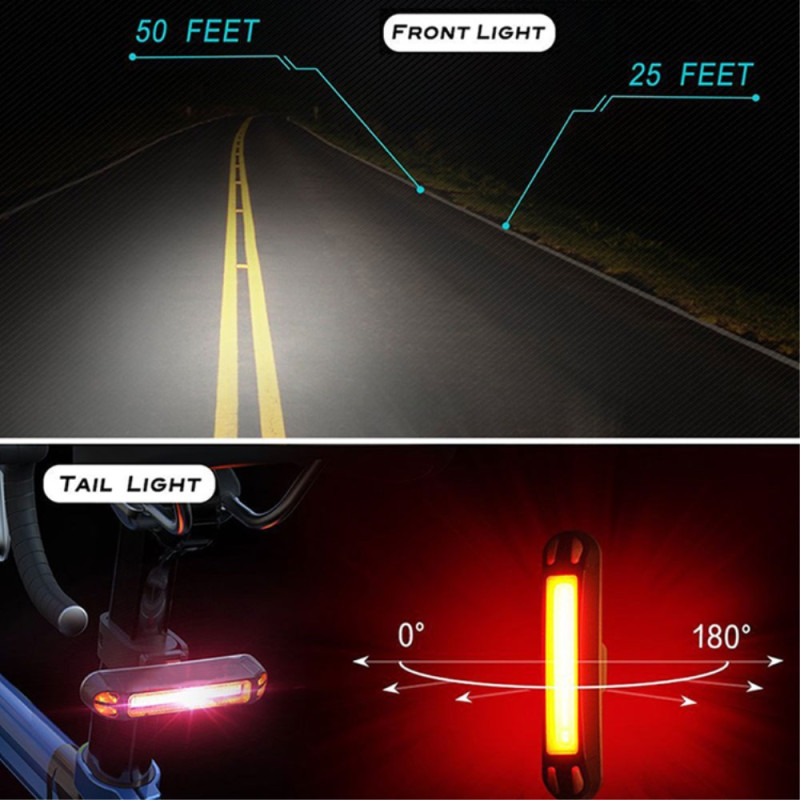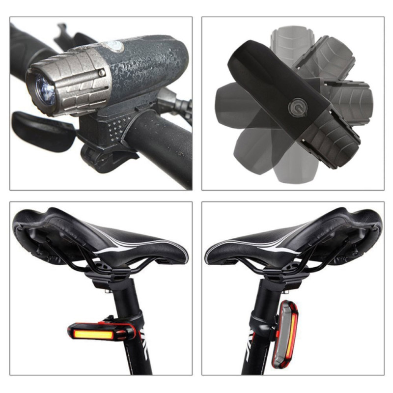 Maximale Sichtbarkeit ist für die Sicherheit des Radfahrers unerlässlich, unabhängig von den Wetterbedingungen oder der Tageszeit. Dieses LED-Lichtset liefert eine Lichtleistung von 400 Lumen und leuchtet die Straße effektiv über 15 Meter weit aus. Die vorderen und hinteren Einheiten sind über USB aufladbar, sodass keine Batterien mehr ausgetauscht werden müssen. Die IPX5-Zertifizierung garantiert einen zuverlässigen Schutz vor Spritzwasser und Regen. Die Frontleuchte bietet 4 Leuchtmodi und die Rückleuchte 5 Leuchtmodi, wodurch eine genaue Anpassung an die Umgebung möglich ist. Die um 360 Grad drehbare Halterung sorgt für eine perfekte Ausrichtung des Lichtstrahls.