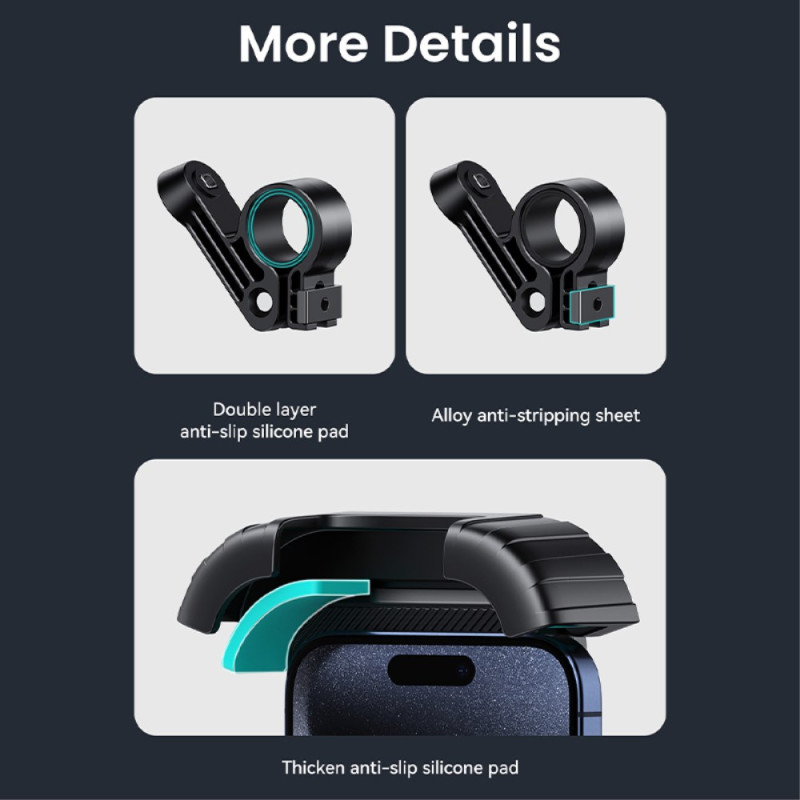 Der sofortige Zugriff auf die Navigation und die Aufrechterhaltung der Sicherheit werden durch diese USAMS-Halterung gewährleistet, die so konzipiert ist, dass sie den Erschütterungen des Straßenverkehrs standhält. Der Ein-Klick-Verriegelungsmechanismus sorgt dafür, dass das Smartphone (4,7 bis 6,7 Zoll) sofort am Lenker befestigt ist, ohne dass es sich lockern kann. Hergestellt aus PC und Silikon, bietet es sowohl Haltbarkeit als auch Vibrationsdämpfung. Der um 360 Grad drehbare Kopf ermöglicht eine optimale Einstellung des Blickwinkels, und das intelligente Design bewahrt den Zugang zu den Tasten und Funktionen des Bildschirms.