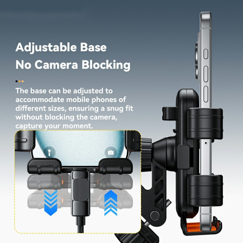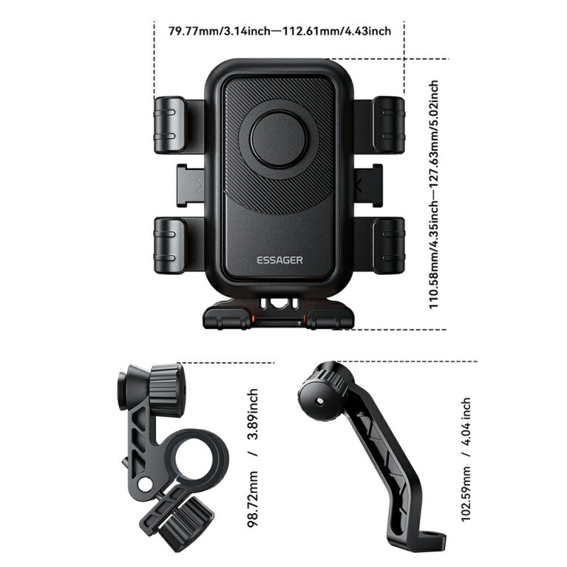 Absolute Sicherheit und ergonomische Handhabung bietet die Doppelverriegelung dieser ESSAGER-Spiegelhalterung. Die Halterung wurde für Motorrad- und Fahrradfahrer entwickelt und sorgt mit ihrem rutschfesten Mechanismus aus Gummi und dem verstärkten Befestigungssystem dafür, dass Ihr Smartphone (4,7 bis 6,9 Zoll) stabil bleibt. Die einhändige Bedienung ermöglicht ein sicheres Einsetzen oder Herausnehmen des Telefons, ohne vom Straßenverkehr abzulenken. Die 360-Grad-Drehung bietet eine perfekte Anpassung des Blickwinkels. Die verstellbare Basis passt sich einer Vielzahl von Telefonmodellen an, sogar mit dicken Hüllen.