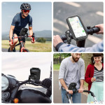 Dank des vollständig wasserdichten Designs ist nun auch bei den stärksten Regenschauern eine kontinuierliche Navigation gewährleistet. Diese Halterung wurde speziell dafür entwickelt, sicher am Rückspiegel (Öffnung 10 mm) Ihres Motorrads oder Elektrofahrrads befestigt zu werden. Das Gehäuse aus ABS und Nylonfaser schützt das Telefon (4,7 bis 6,8 Zoll) vor Wasser, Sand und Staub. Die Silikonpolster und der innere Schwamm absorbieren Stöße und Vibrationen. Das Kugelgelenk ermöglicht eine 360°-Drehung für einen optimalen Blickwinkel, während der volle Zugriff auf den Touchscreen eine einfache Bedienung gewährleistet.