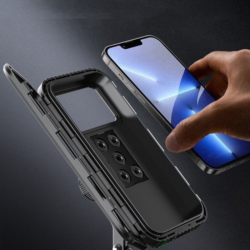 Ihr Seelenfrieden ist gesichert. Egal bei welchem Wetter oder welcher Geschwindigkeit, diese Halterung schützt Ihr Smartphone vollständig vor den Elementen. Sie ist so konzipiert, dass sie sicher am Rückspiegel (Motorrad, Elektrofahrrad) befestigt werden kann, und eliminiert das Risiko, dass sie herunterfällt oder zerbricht. Das Gehäuse aus hitzebeständigem ABS und Nano-PU bietet einen dauerhaften, wasserdichten Schutz vor Wasser, Schnee und Staub. Die Halterung ist universell einsetzbar und nimmt Telefone mit einer Größe von 4,0 bis 7,0 Zoll auf. Sein Design ermöglicht eine schnelle und einfache Installation, sodass Sie ihn sofort verwenden können.