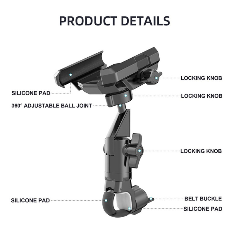 Um eine unterbrechungsfreie Navigation selbst in anspruchsvollstem Gelände zu gewährleisten, ist strukturelle Stabilität von entscheidender Bedeutung. Dieser Ständer verfügt über eine robuste ABS-Konstruktion und schützende Silikonpads, die eine überlegene Vibrationsdämpfung gewährleisten. Er bietet eine umfassende Anpassungsfähigkeit mit einer 360-Grad-Drehung und einer 45-Grad-Neigung nach vorne und hinten, wodurch ein perfekter Blickwinkel ermöglicht wird. Das Design der Halterung bewahrt den vollen Zugriff auf den Bildschirm und die Kamera und optimiert so die Sicherheit bei der Verwendung und die Aufnahme von Landschaften. Das elegante Design verleiht dem Cockpit einen Hauch von Raffinesse.
