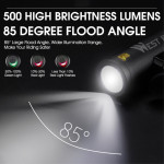 Die deutliche Verbesserung der Sicherheit bei Nacht wird durch die Kombination von 500 Lumen und Weitwinkelausleuchtung gewährleistet. Diese Frontleuchte verwendet eine T6-LED, die einen 200 Meter langen Lichtstrahl mit einer 85-Grad-Abdeckung liefert. Das Gehäuse aus einer matten Aluminiumlegierung ist auf maximale Stärke und Haltbarkeit ausgelegt. Der eingebaute 2000mAh-Akku sorgt für eine lange Betriebsdauer und minimiert die Häufigkeit des Aufladens. Das Gerät ist nach IPX5 zertifiziert und gewährleistet so seine Wetterfestigkeit. Es stehen fünf Beleuchtungsmodi zur Verfügung, die eine Anpassung an alle Radsportumgebungen ermöglichen.