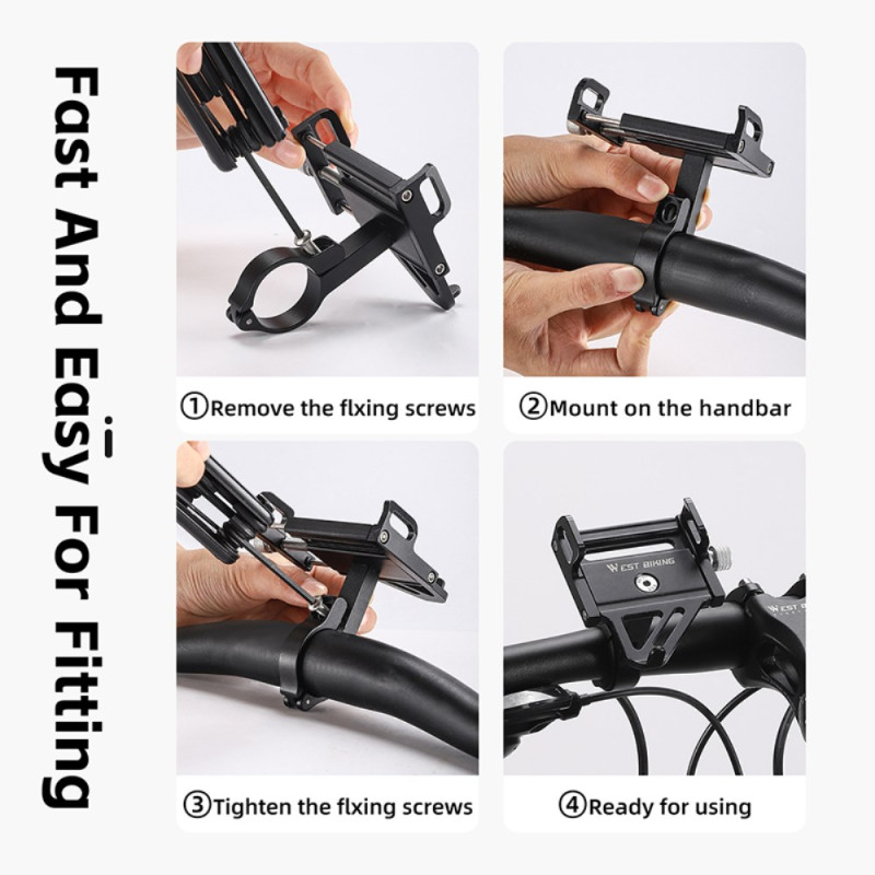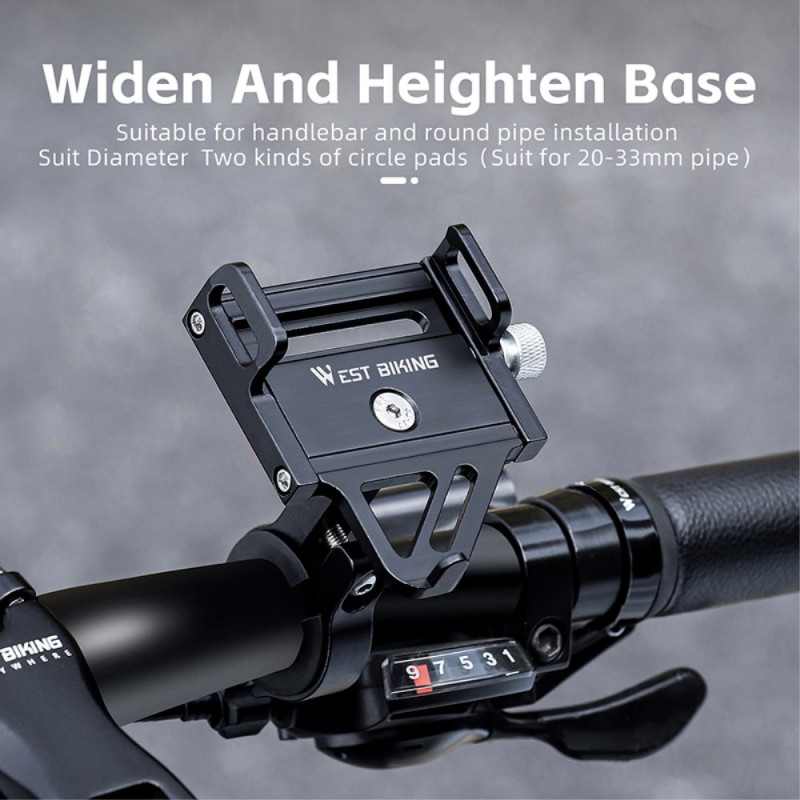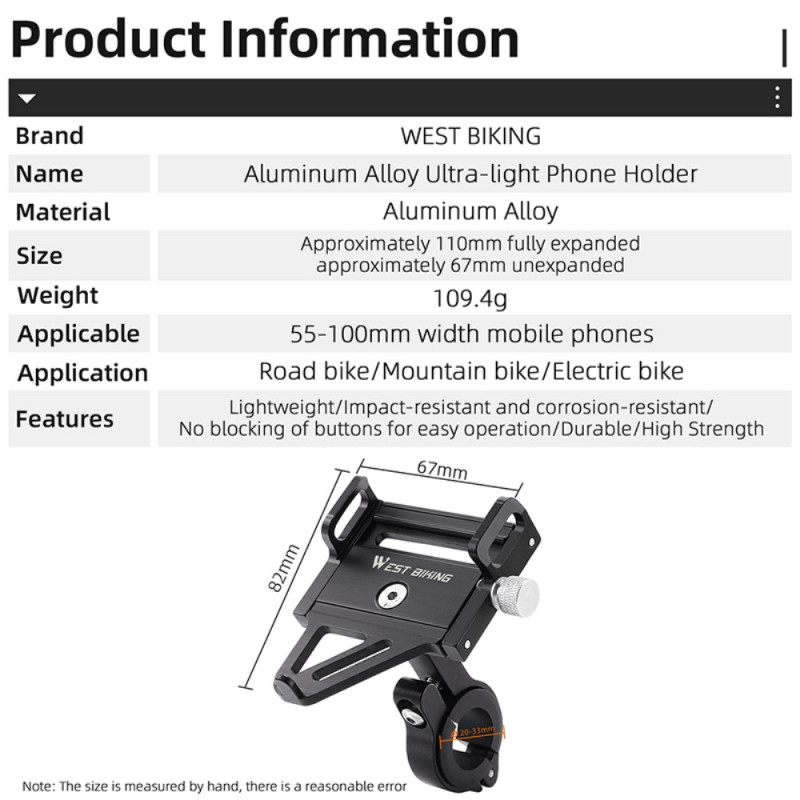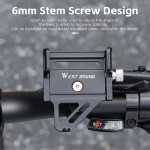 Die CNC-gefräste Aluminiumlegierung verleiht dieser Telefonhalterung eine unübertroffene Haltbarkeit, Leichtigkeit und Oxidationsbeständigkeit. Diese WEST BIKING-Vorrichtung wiegt nur 109,4 g und ist so konzipiert, dass sie Telefone mit einer Breite von 55 mm bis 100 mm sichert. Das intelligente Design bewahrt den Zugang zu den Seitentasten und dem Ladeanschluss. Die breite und hohe Basisstation lässt sich sicher auf Rundrohren von 20mm bis 33mm montieren. Dank der 6mm-Schraubenverstellung kann der Befestigungswinkel für maximale Stabilität und Sichtbarkeit auf allen Arten von Fahrrädern optimiert werden.