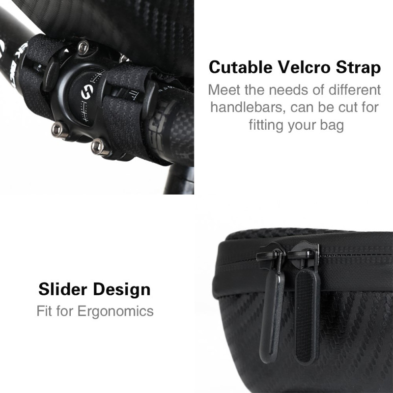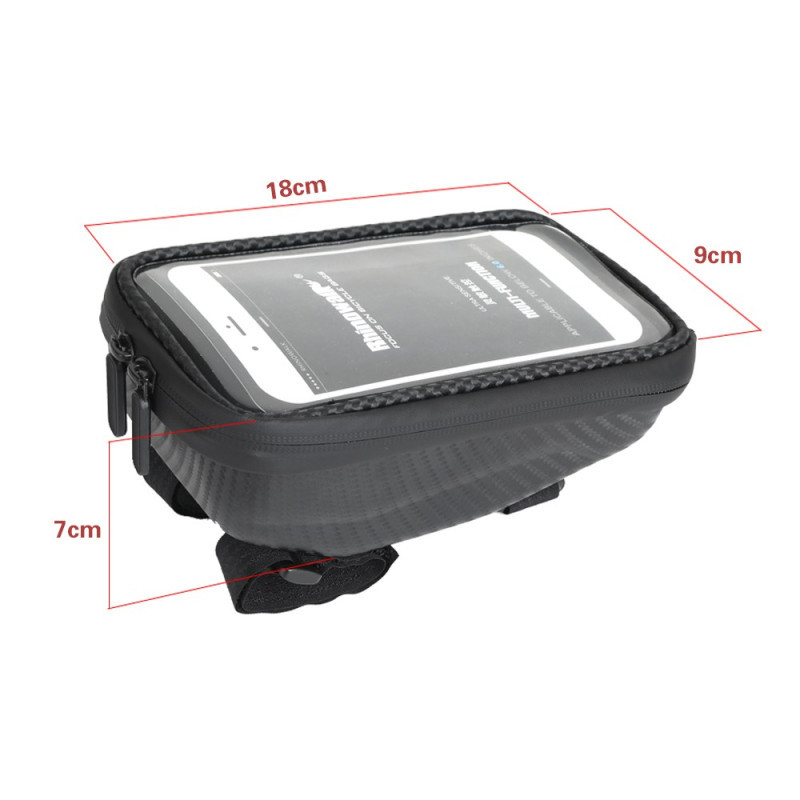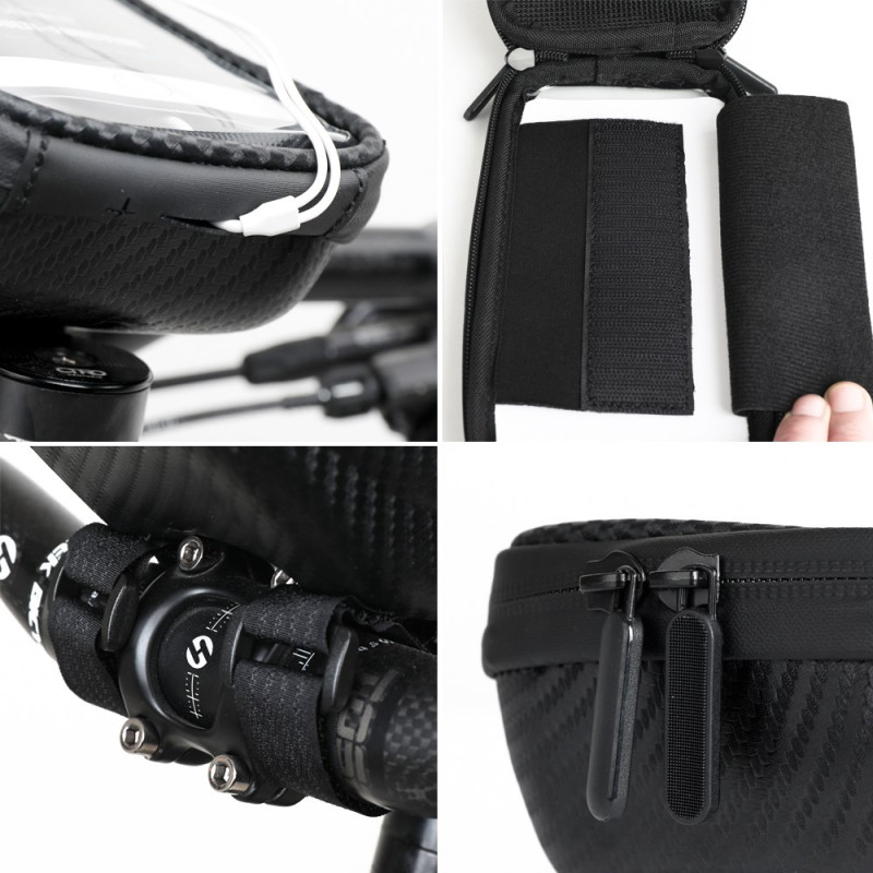 Die kontinuierliche Interaktion mit der Navigation und der Schutz der Geräte werden durch das integrierte Design dieser Tasche gewährleistet. Hergestellt aus PU und einer EVA-Hartschale, bietet sie eine hervorragende Verschleiß- und Stoßfestigkeit. Die hochempfindliche TPU-Folie ermöglicht die Bedienung des Smartphones, ohne es aus der Halterung zu nehmen. Der doppelte, wasserdichte Reißverschluss sorgt dafür, dass der Inhalt auch bei Regenwetter unversehrt bleibt. Das Innenvolumen ist groß genug, um einen externen Akku, ein Reparaturset und Ihre persönlichen Gegenstände unterzubringen. Die verstellbaren Riemen sorgen für eine feste und stabile Befestigung am Fahrradrahmen.
