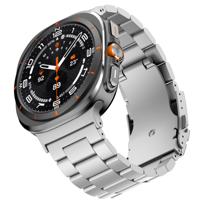 Entdecken Sie unser Armband aus Titanlegierung für die Samsung Galaxy Watch Ultra 47mm. Es ist leicht, langlebig und elegant und bietet eine universelle Passform und einen sicheren Verschluss.
