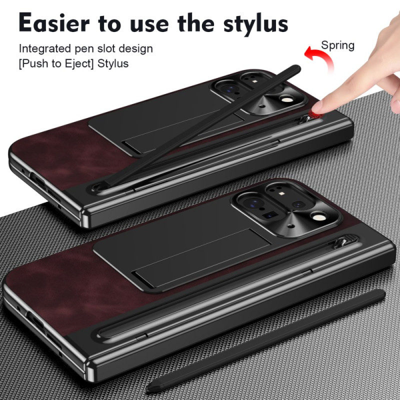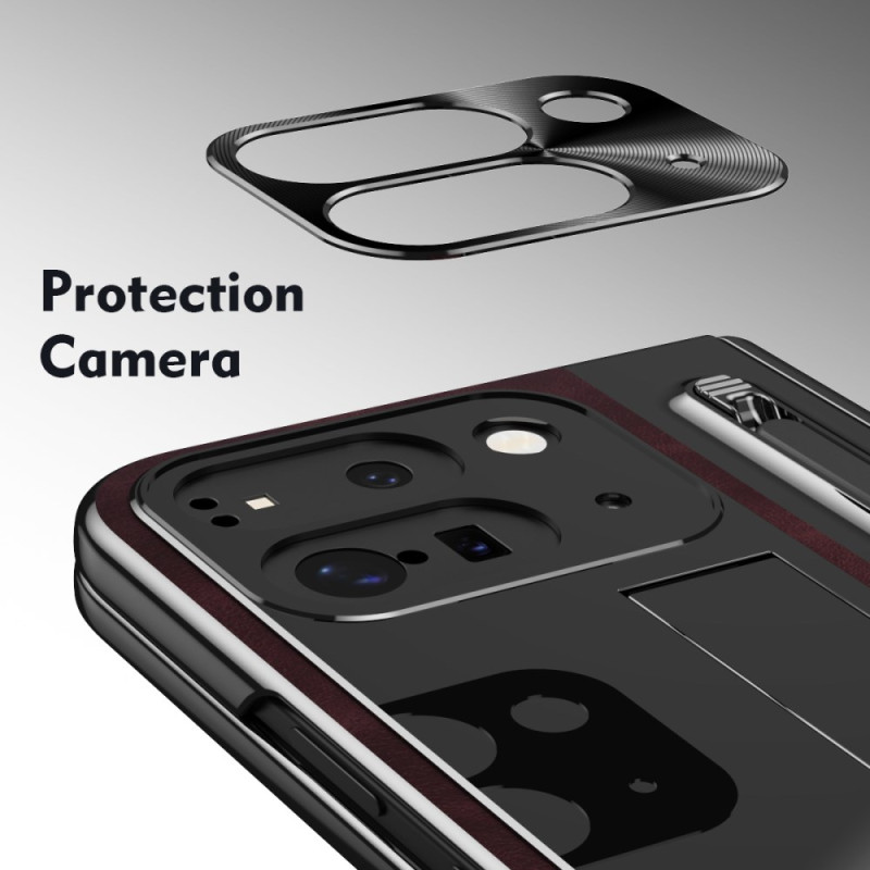 Entdecken Sie unsere Premium-Schutzhülle für das Google Pixel 10 Pro Fold. Sie ist aus PU- und PC-Leder gefertigt und bietet einen umfassenden Schutz mit einem integrierten Ständer, einem Stiftschlitz und einer Folie aus gehärtetem Glas.