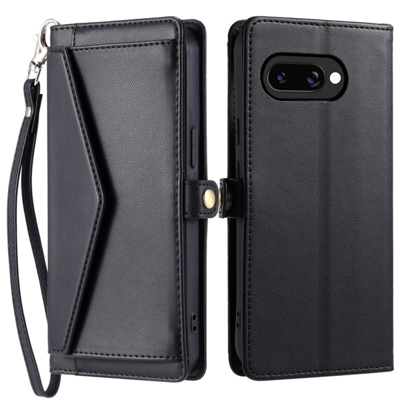 Elegante Brieftasche für das Google Pixel 10A mit praktischer Handschlaufe und verstellbarer Halterung. Verfügt über 3 Kartenfächer und 1 Bargeldfach. Voller Schutz vor Kratzern mit Empfängerloch, damit Sie Anrufe annehmen können, ohne das Etui zu öffnen.