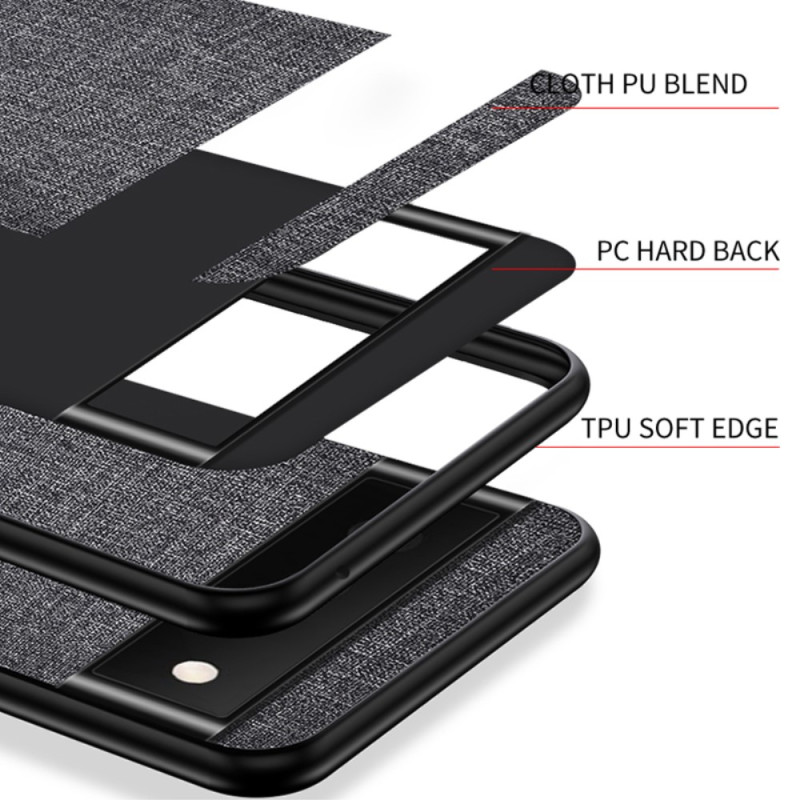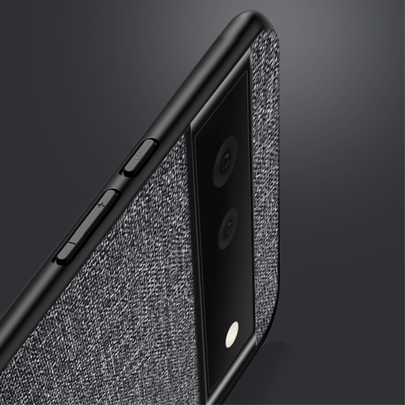 Wählen Sie diese tolle Kunststoffhülle mit Stoffbezug, die das Google Pixel 8 besonders gut in der Hand hält.