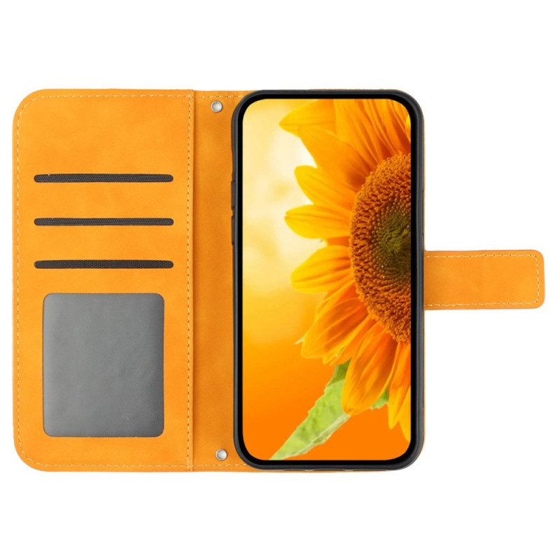 Sein aufgedrucktes Sonnenblumenmuster zeigt Eleganz und Stil.