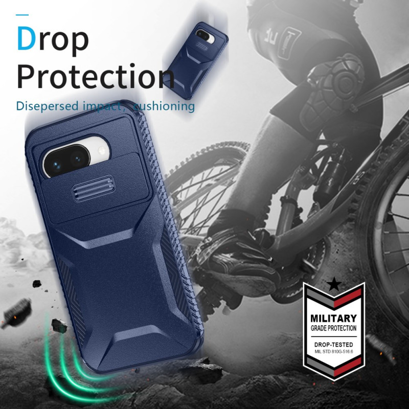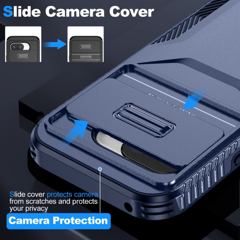 Entdecken Sie unsere innovative Schutzhülle für das Google Pixel 9A. Diese Hülle verfügt über einen verschiebbaren Kameraschutz und kombiniert weiches TPU mit hartem PC für einen optimalen Schutz vor Stößen.