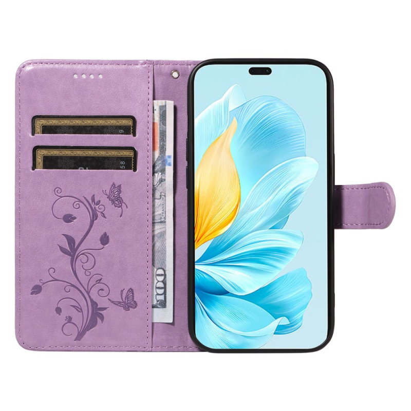 Diese Tasche für Honor 200 Lite hat ein exquisites Muster aus Schmetterlingen und Blumen.