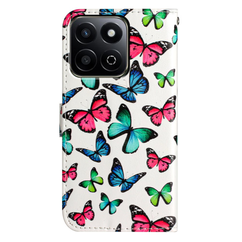 Schützen Sie Ihr Honor X7c 5G / 4G / 200 Smart 5G stilvoll mit dieser Brieftasche mit charmantem Schmetterlingsmuster. Mit 3 Kartenfächern, einer Seitentasche und einem sicheren Magnetverschluss vereint es Stil und Praktikabilität.