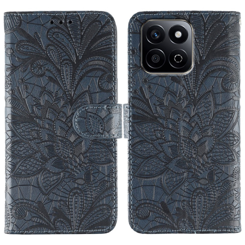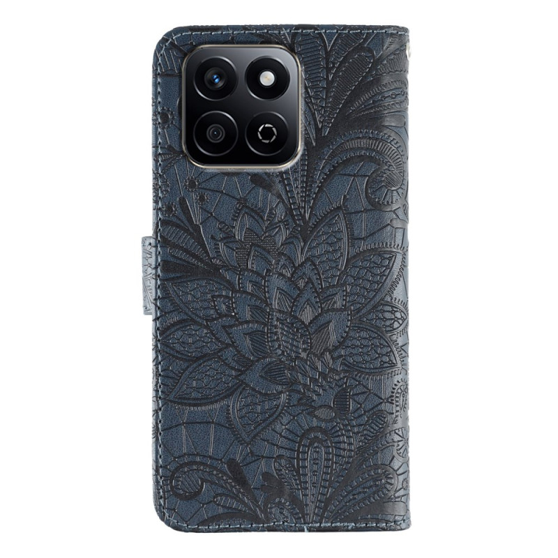 Schützen Sie Ihr Honor X7c 5G / 4G / 200 Smart 5G elegant mit dieser raffinierten Brieftasche, die mit einem floralen Spitzenmuster verziert ist. Mit Karten- und Bargeldfächern, einer Ständerfunktion und einer praktischen Handschlaufe vereint sie Stil und Funktionalität.