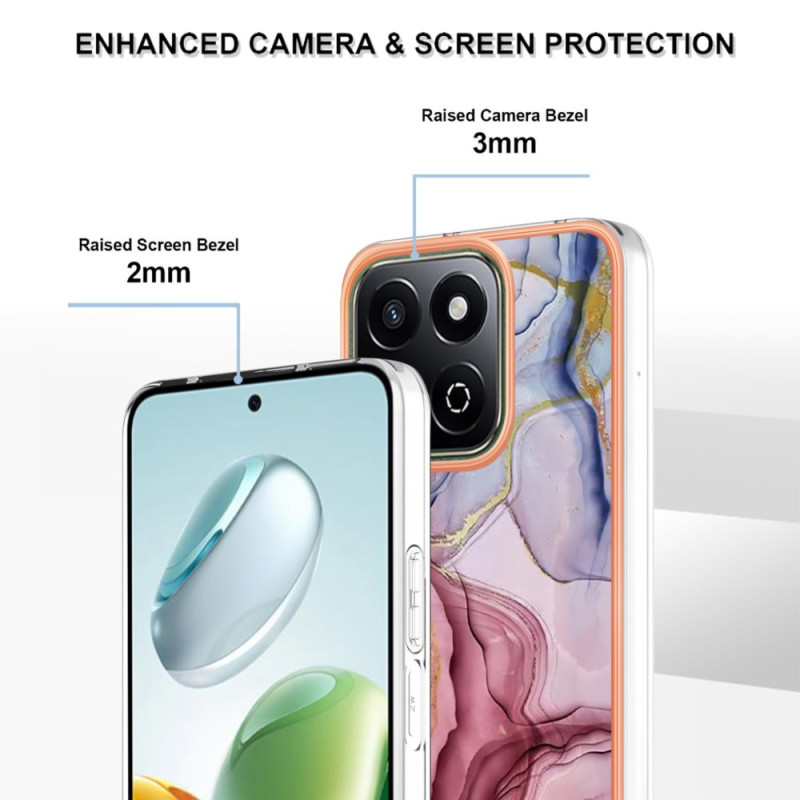 Schützen Sie Ihr Honor X7c 4G / 200 Smart 5G elegant mit dieser flexiblen TPU-Hülle mit raffiniertem Marmormuster. Mit einer Premium-Elektrolytbeschichtung und erhöhten Rändern von 2 mm für das Display und 3 mm für die Kamera bietet sie...