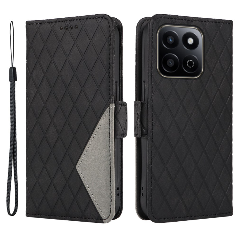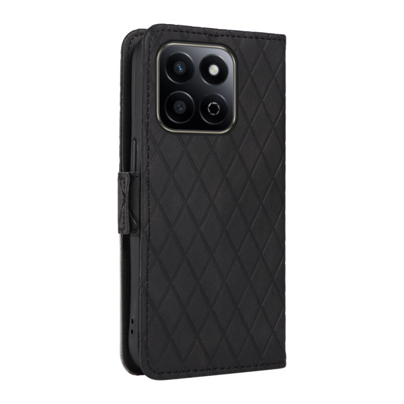 Schützen Sie Ihr Honor X7c 4G / 200 Smart 5G stilvoll mit dieser raffinierten Brieftasche. Das gepolsterte Rautendesign vereint Stil und Zweckmäßigkeit mit 3 Kartenfächern, einem seitlichen Bargeldfach und einer integrierten Ständerfunktion.
