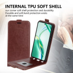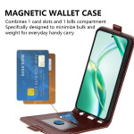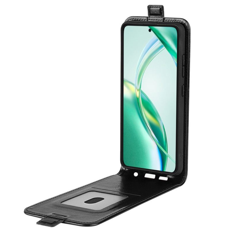 Vertikal aufklappbare Tasche aus Premium-PU-Leder für Honor 200 Smart 5G / X7c 4G. Praktisches Design mit nach unten gerichteter Öffnung für die Einhandbedienung, integriertem Kartensteckplatz und sicherem Magnetverschluss.