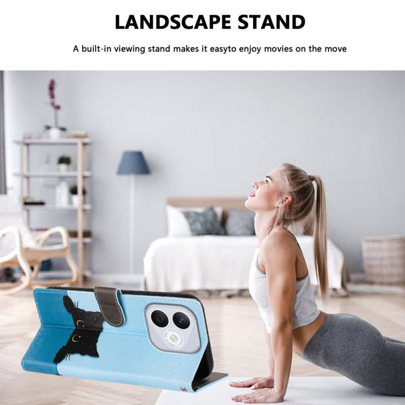 Schützen Sie Ihr Honor 400 Lite 5G stilvoll mit dieser eleganten Brieftasche mit schwarzem Katzenmotiv. Es verfügt über ein magnetisches Folio Design, 2 Kartenfächer, 1 Geldscheinfach und eine verstellbare Ständerfunktion.