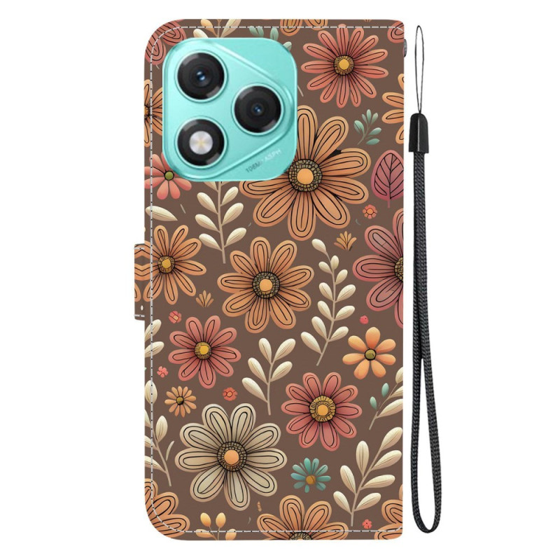 Schützen Sie Ihr Honor 400 Lite 5G elegant mit dieser Brieftasche mit raffiniertem Blumenmuster. Mit Kartenschlitzen, einem faltbaren Ständer und einer praktischen Handschlaufe vereint es Stil und Funktionalität für den Alltag.