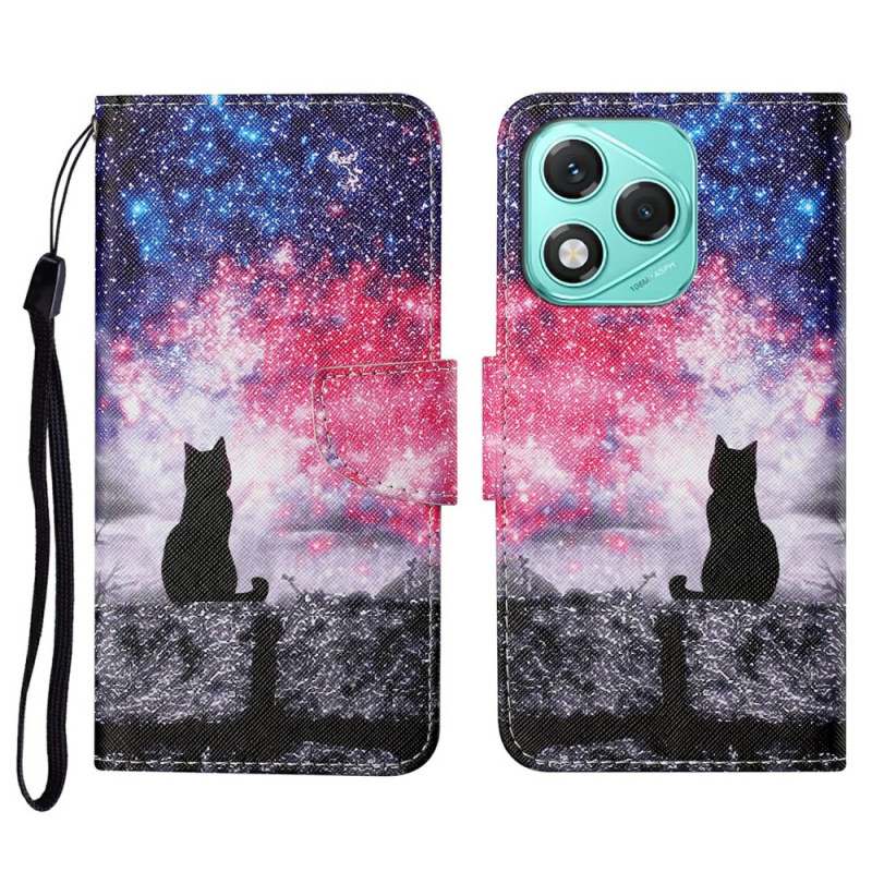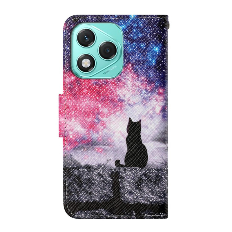 Schützen Sie Ihr Honor 400 Lite 5G stilvoll mit dieser eleganten Brieftasche mit dem Motiv Katze Galaxie. Mit einem verstellbaren Halter, Kartenfächern und einer abnehmbaren Handschlaufe bietet sie optimalen Schutz und Funktionalität für den Alltag.