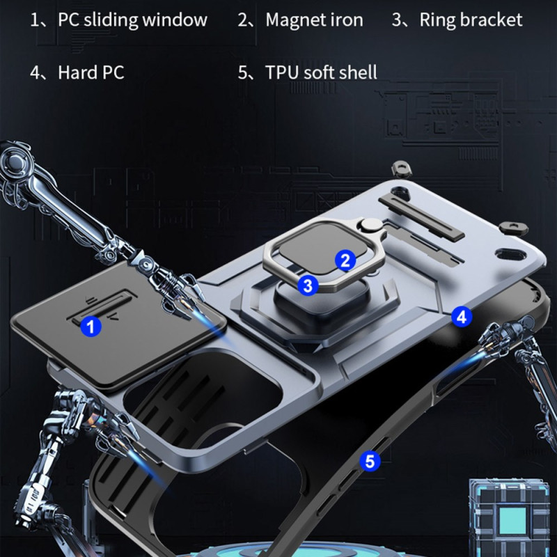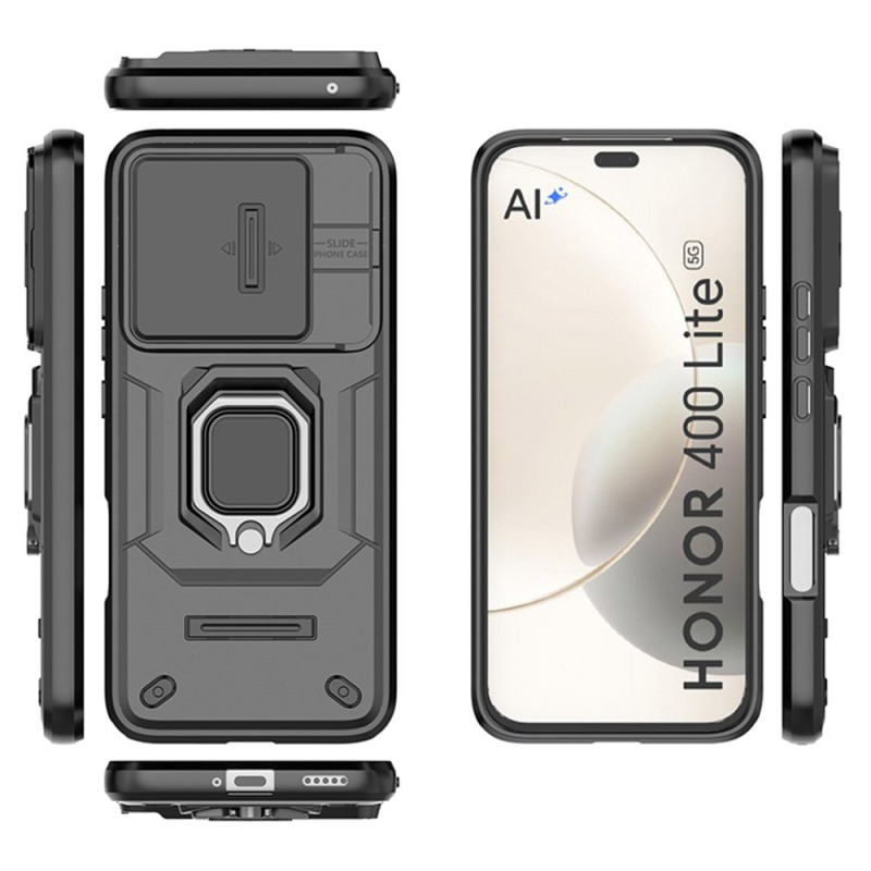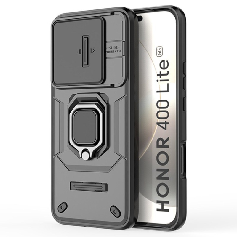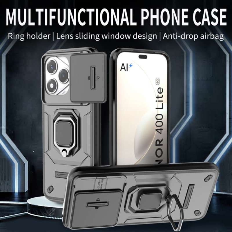 Protégez votre Honor 400 Lite 5G avec cette coque robuste dotée d'une béquille rotative intégrée et d'un cache objectif coulissant. Fabriquée en matériaux de qualité supérieure, elle offre une protection complète contre les chocs et les rayures tout en permettant un accès facile à toutes les fonctionnalités.