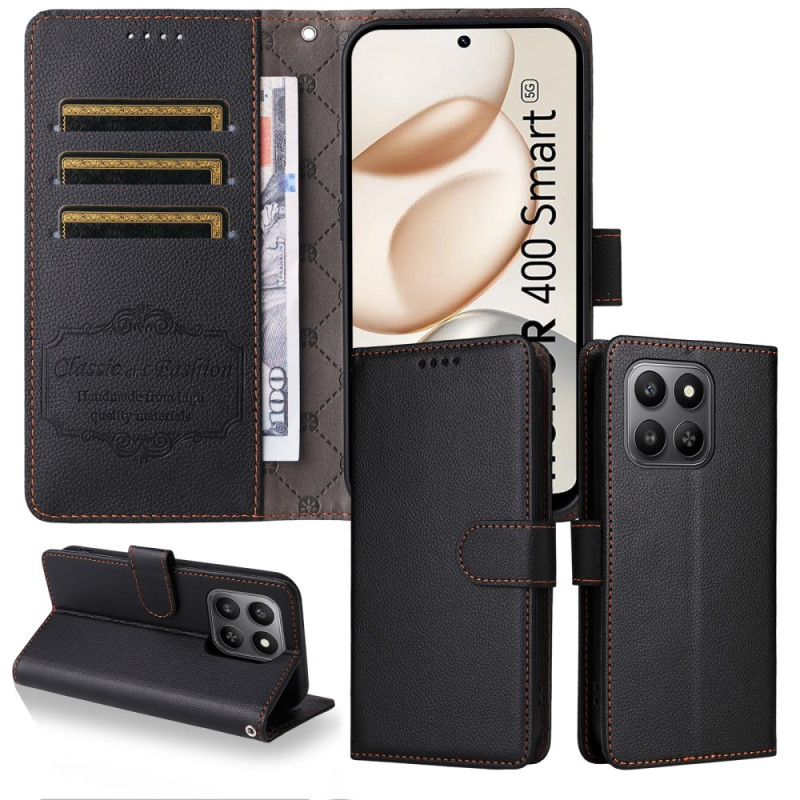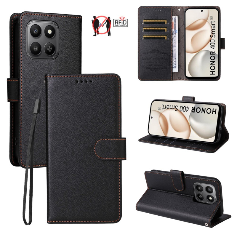 Entdecken Sie unsere intelligente Hülle für Honor 400 Smart 5G / 4G, die Stil und Funktionalität vereint. Sie ist aus hochwertigem PU-Leder gefertigt und bietet RFID-Schutz, Kartenfächer, eine Standfunktion und einen Magnetverschluss. Perfekt für den praktischen und sicheren täglichen Gebrauch.