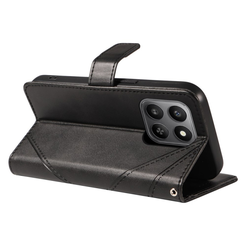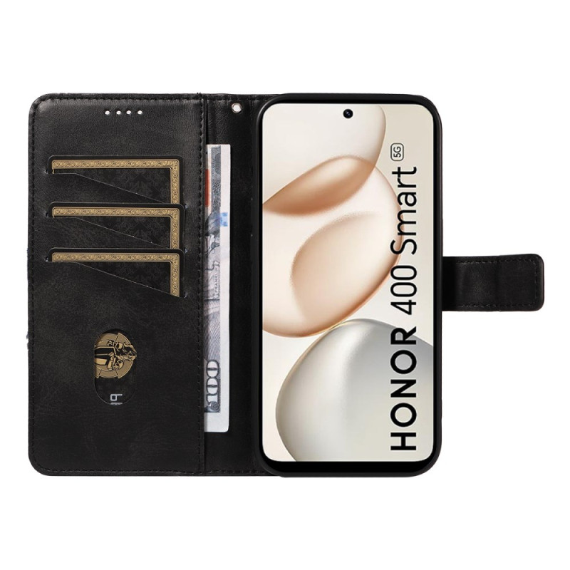 Entdecken Sie unsere elegante und multifunktionale Ledertasche für Honor 400 Smart 400 4G. Sie wurde in einem raffinierten geometrischen Design entworfen und bietet dank des strukturierten PU-Leders und des matten TPUs einen überlegenen Schutz. Diese praktische Brieftasche verfügt über Kartenschlitze, ein Fach für Geldscheine, eine Standfunktion und einen sicheren Magnetverschluss.