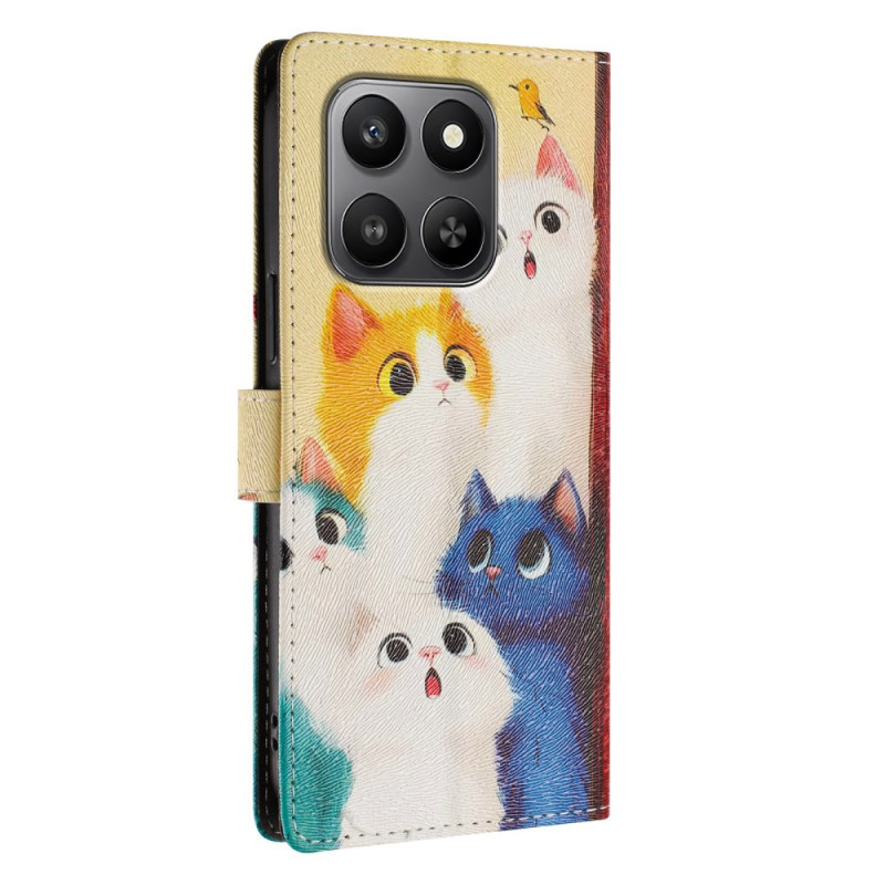 Entdecken Sie unsere elegante Brieftasche für Honor 400 Smart 5G / 4G. Sie vereint Stil und Funktionalität und bietet einen langlebigen Schutz aus PU-Leder mit einem einzigartigen Druckdesign mit bunten Katzen. Nutzen Sie die zahlreichen Funktionen, darunter praktische Verstaumöglichkeiten, ein integrierter Ständer und eine abnehmbare Handschlaufe, um den täglichen Gebrauch zu erleichtern.