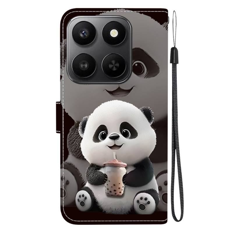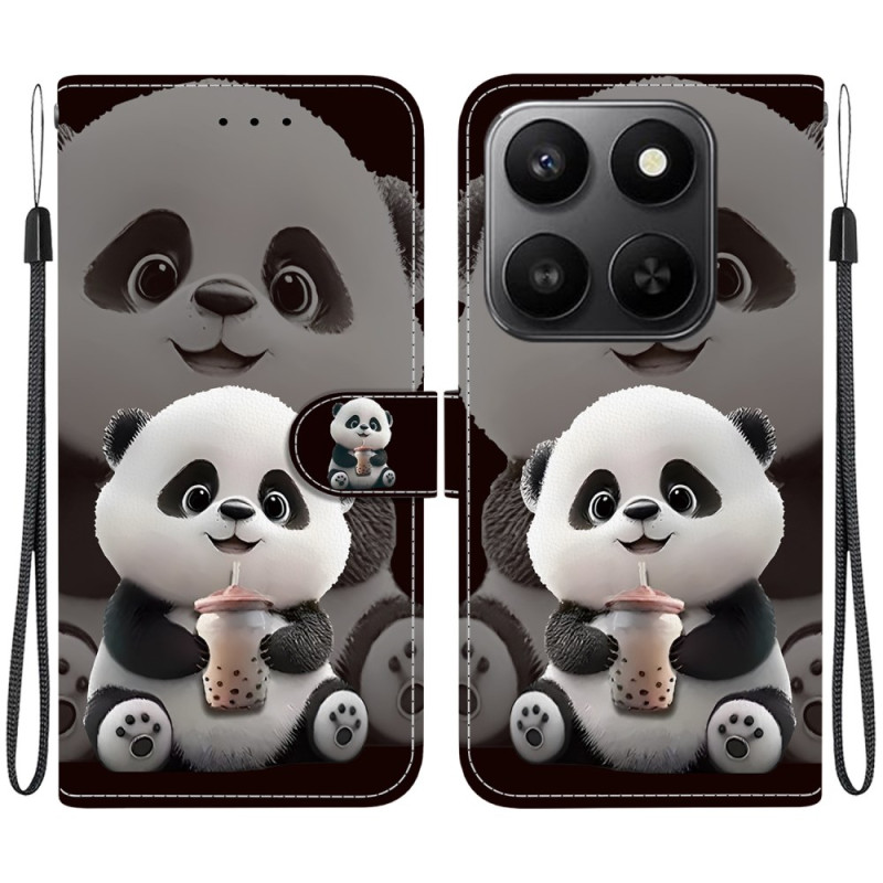 Elegante Brieftasche mit niedlichem Panda-Motiv mit Milchtee. Integrierte Halterung für freihändiges Betrachten, 2 Kartenfächer und ein Geldscheinfach. Sicherer Magnetverschluss und abnehmbare Handschlaufe für einen einfachen Transport im Alltag.