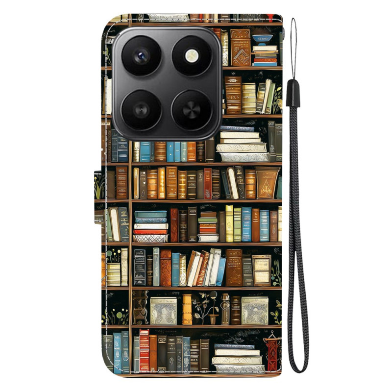 Schützen Sie Ihr Honor 400 Smart 5G / 4G elegant mit dieser multifunktionalen Brieftasche. Raffiniertes Design mit Bibliotheksmotiv, integrierter Klappständer, Karten- und Geldfach, sicherer Magnetverschluss und abnehmbare Handschlaufe für den einfachen Transport im Alltag.
