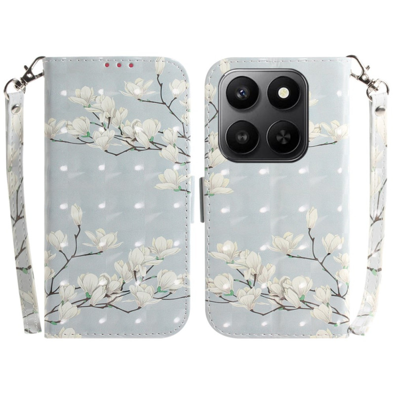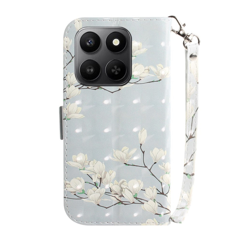 Schützen Sie Ihr Honor 400 Smart 5G / 4G elegant mit dieser raffinierten Brieftasche mit einem wunderschönen Magnolienmuster. Mit Kartenschlitzen, einem faltbaren Ständer und einer praktischen Handschlaufe vereint es Stil und Funktionalität für den Alltag.