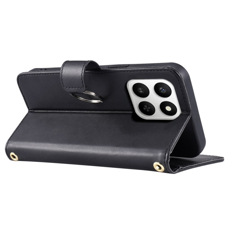Elegante Brieftasche mit raffiniertem Rautendesign, dekorativem Ring und integriertem Halter. Enthält 5 Kartenfächer, ein Reißverschlussfach und zwei Schulterriemen, die in der Hand, am Hals oder über der Schulter getragen werden können. Umfassender Schutz vor Stürzen und Kratzern.