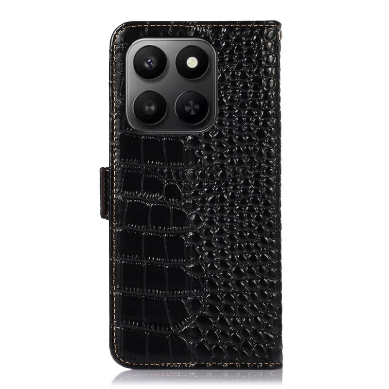 Entdecken Sie diese elegante Brieftasche mit raffinierter Krokodil-Muster für Ihr Honor 400 Smart 5G / 4G / X7d 5G / 4G. Ausgestattet mit 3 Kartenfächern, einem Bargeldfach und RFID-Sperrtechnologie vereint es Stil und Sicherheit. Die integrierte Halterung bietet einen verstellbaren Betrachtungswinkel für Videos und Anrufe.