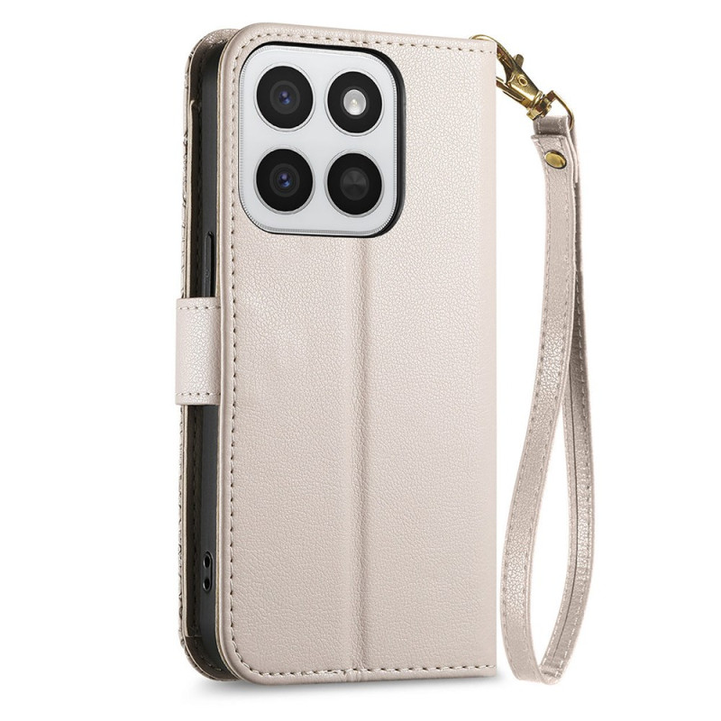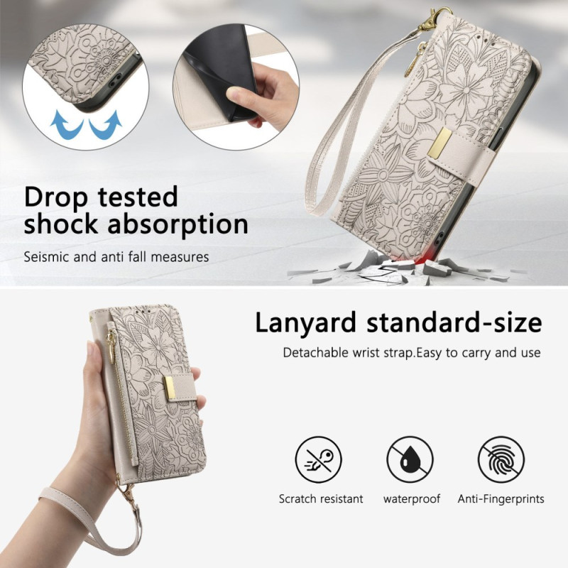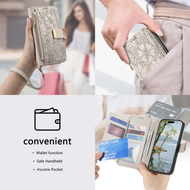 Entdecken Sie diese elegante, multifunktionale Brieftasche für Ihr Honor 400 Smart 5G / 4G / X7d 5G / 4G. Raffiniertes Design mit eingravierten Blumenmotiven, mehreren Kartenfächern, einem sicheren Reißverschlussfach und einer abnehmbaren Handschlaufe. Verbindet Premium-Schutz mit praktischer Alltagstauglichkeit.