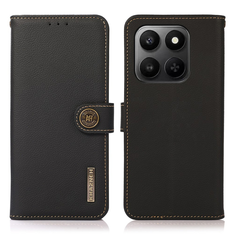 Entdecken Sie das KHAZNEH Wallet Case aus echtem Rindsleder für Honor X7d und 400 Smart. Es vereint Eleganz und Funktionalität und bietet RFID-Schutz vor Datendiebstahl, einen extrem starken Magnetverschluss und eine praktische Halterung, damit Sie Ihre Inhalte in aller Freiheit ansehen können.