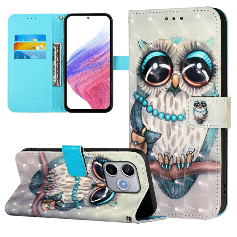 Verlieben Sie sich in diese Brieftasche mit grauem Eulenmotiv, die speziell für das Honor 600 Lite 5G entworfen wurde.