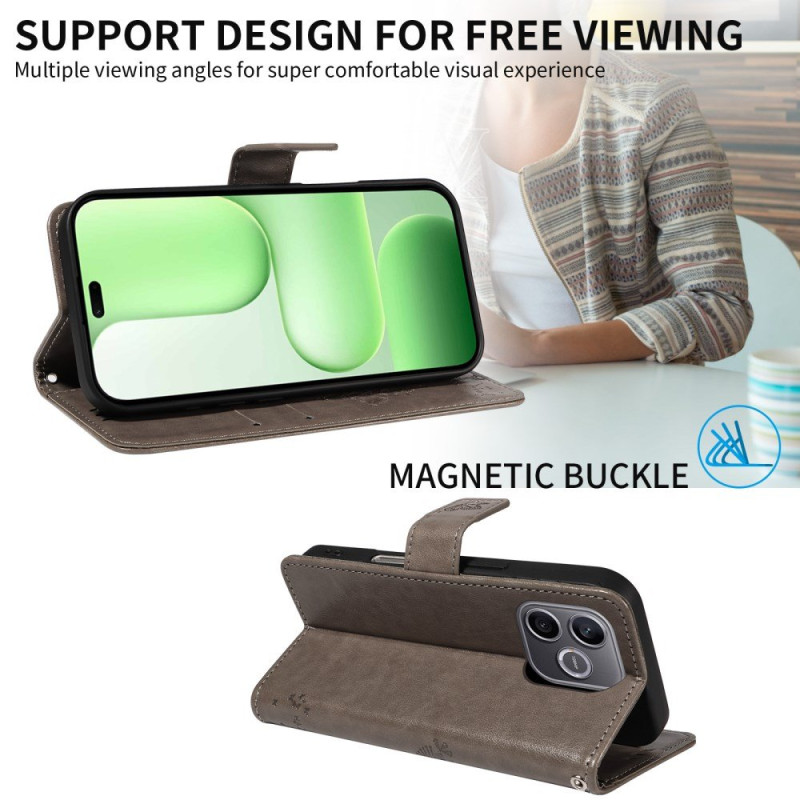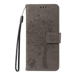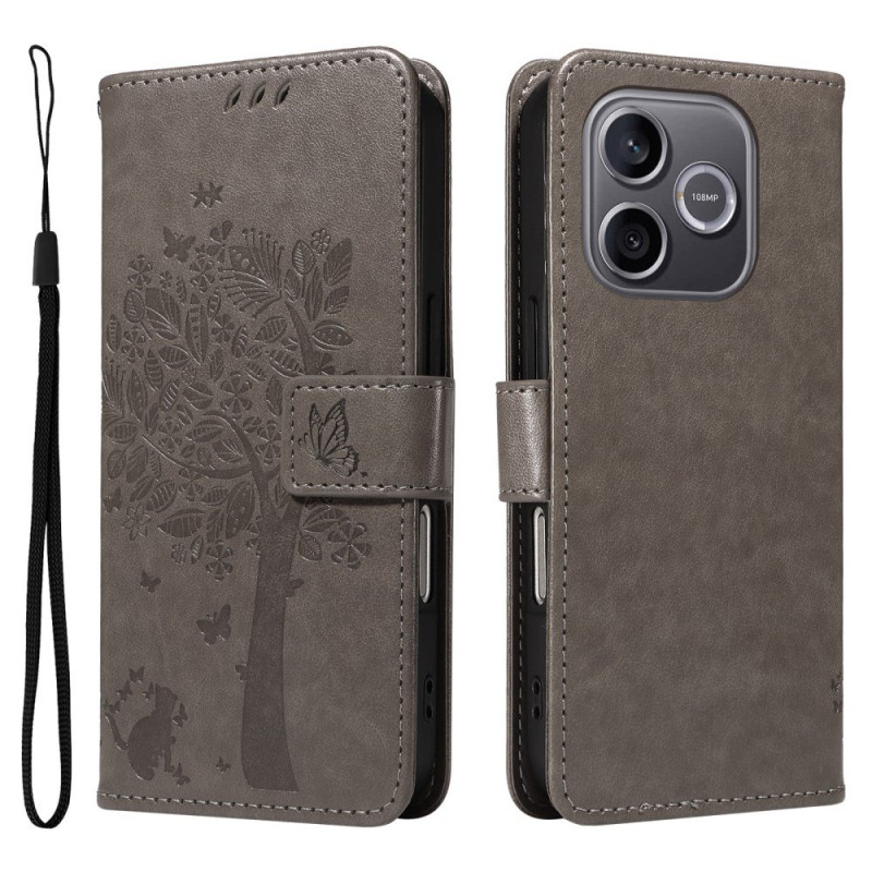 Schützen Sie Ihr Honor 600 lite 5G mit dieser eleganten Brieftasche mit Katzen- und Baummotiv.