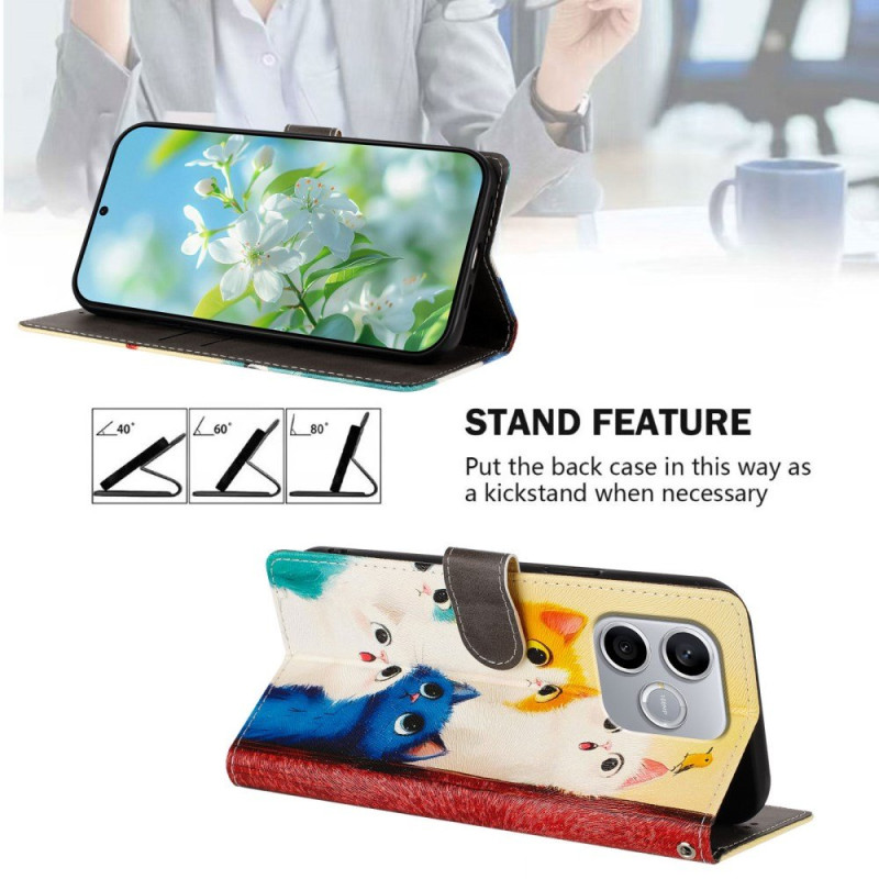 Bringen Sie Ihre Persönlichkeit zum Ausdruck mit dieser Brieftasche für das Honor 600 Lite 5G mit buntem Katzenmotiv.