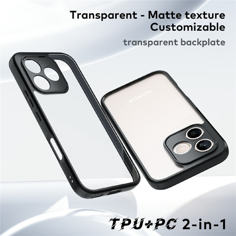 Schützen Sie Ihr Honor 600 Lite 5G mit dieser schwarzen transparenten Hülle, die Einfachheit und Effizienz vereint.