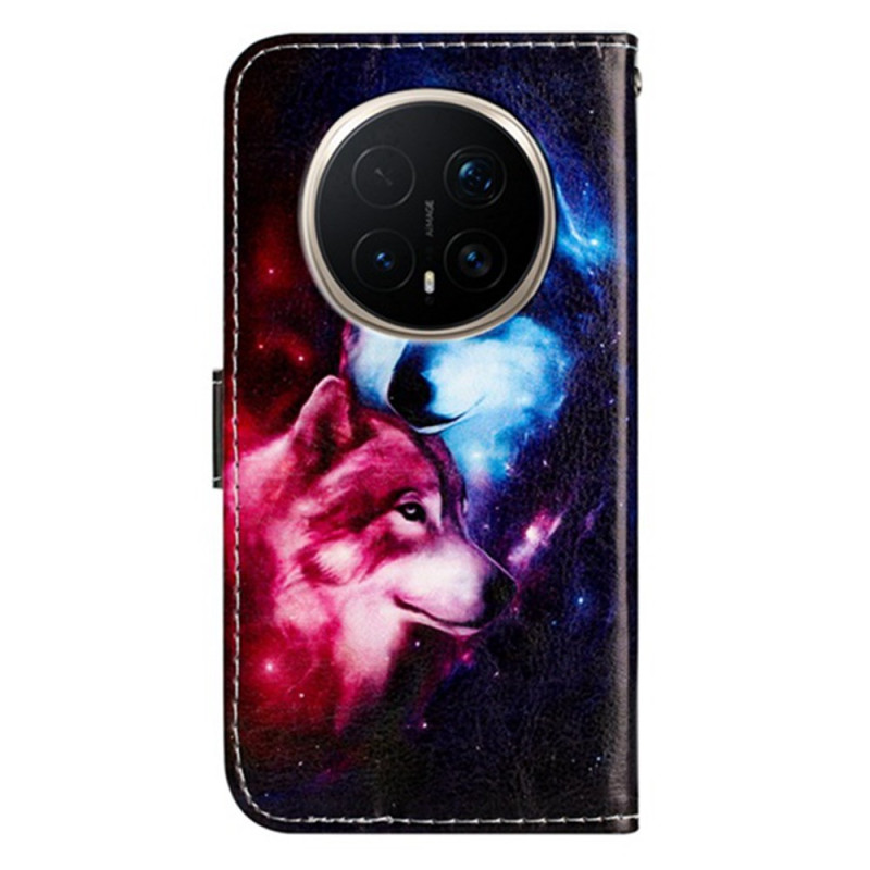 Elegante Brieftasche mit aufgedrucktem Wolfsmotiv für Honor Magic 8 Pro 5G. Rundumschutz aus Kunstleder mit verstellbarer Halterung, 3 Kartenfächern, sicherem Magnetverschluss und abnehmbarer Handschlaufe.