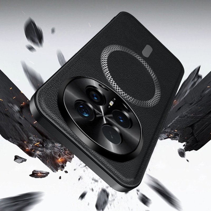 MagSafe-kompatible Premium-Schutzhülle für Honor Magic 8 Pro 5G. Konstruktion aus PU, TPU und PC für optimalen Schutz, stoßfestes Airbag-Design, Metallrahmen für erhöhte Linse und präzise Ausschnitte. Unabhängige Tasten und rutschfeste Kanten.